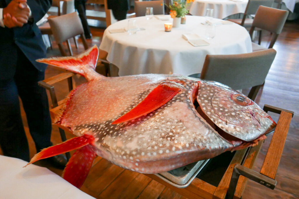 ハワイではアカマンボウはオパの名で知られ、高級魚として扱われることもある人気の食材です。マグロ延縄漁などで混獲されることが多く、ホノルル魚市場などでは定期的に水揚げされています。アカマンボウは白身魚ではあるものの、身には赤みがかった色合いがあり、特に腹部は脂がのっていて甘みが強いとされています。このように、身は部位によって味や食感が異なるため、刺身、グリル、ソテー、燻製、煮込み料理など多彩な調理法で楽しまれています。特に、脂の乗った腹身はハワイのマグロとも称されるほど人気があり、レストランのメニューにも登場します。