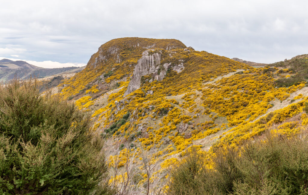ニュージーランド南島の東海岸に突き出したバンクス半島は、かつて外来種の植物ハリエニシダに一面を覆われていました。