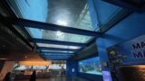 天井には下から見上げて、カブトガニの腹側を観察できる水槽があります。普段はなかなか見られない脚や口の動きまで、じっくり観察できます。